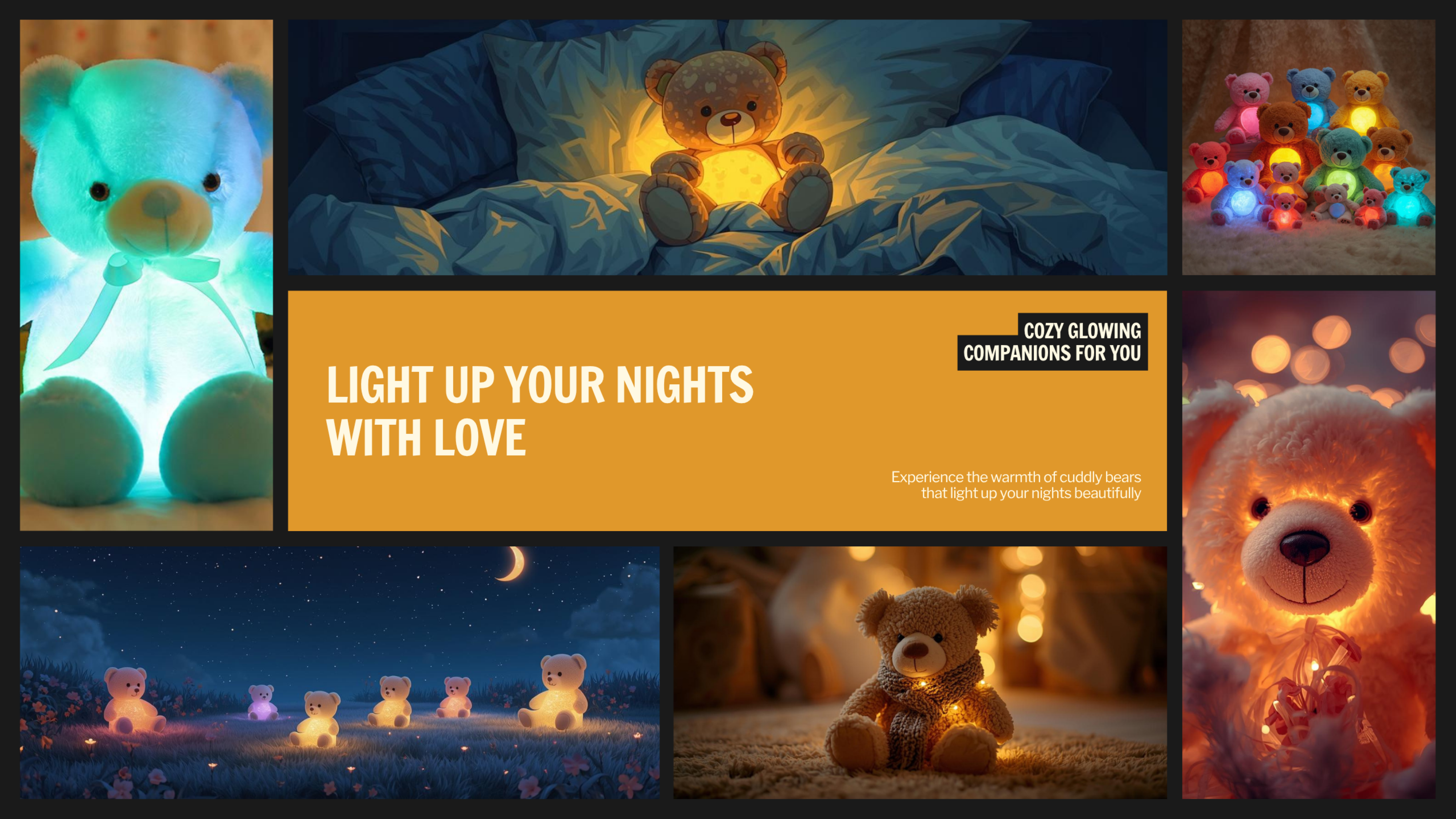 Bring a cozy feeling to any room with this warm yellow glow teddy bear. Its soft fur and gentle light make it perfect for bedtime or as a sweet gift...